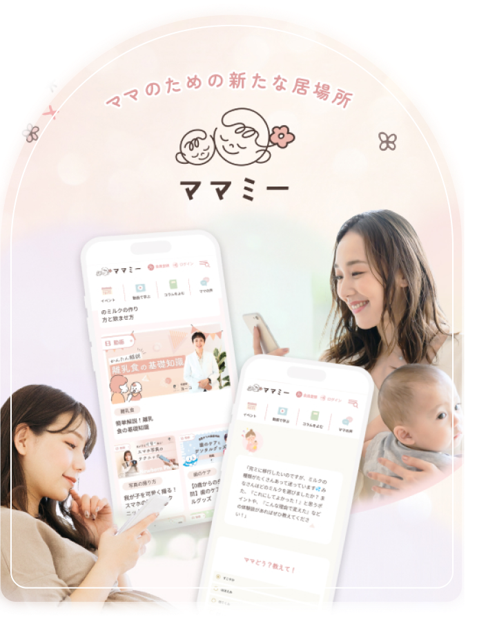 ママミーは、妊娠中〜生後1年半の赤ちゃんを育てるママが安心して学び、繋がれるオンラインコミュニティーです。